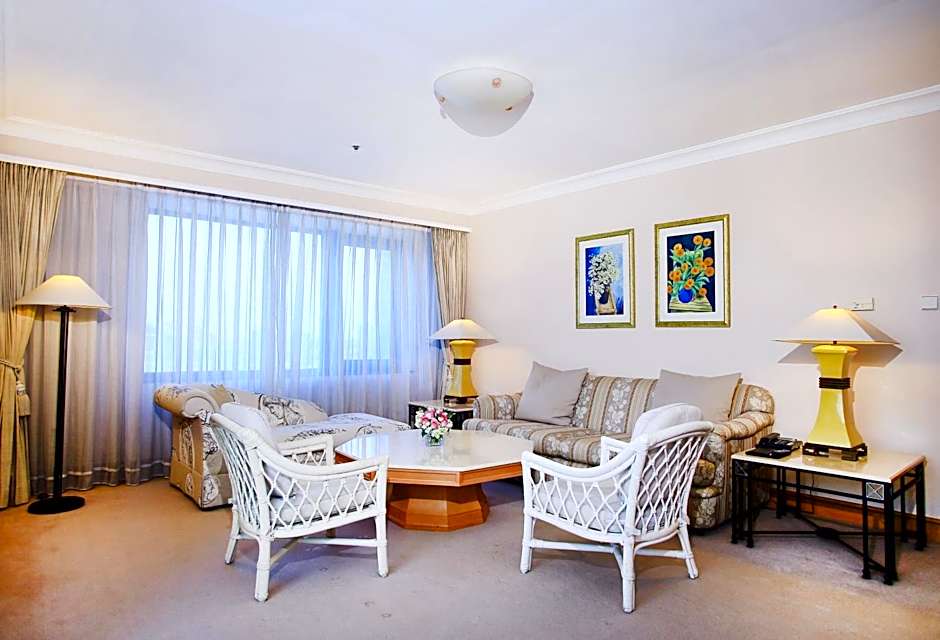 Suites are more spacious and feature a living area with sofa. They offer large windows with views of the Thu Le Lake or the City skyline.